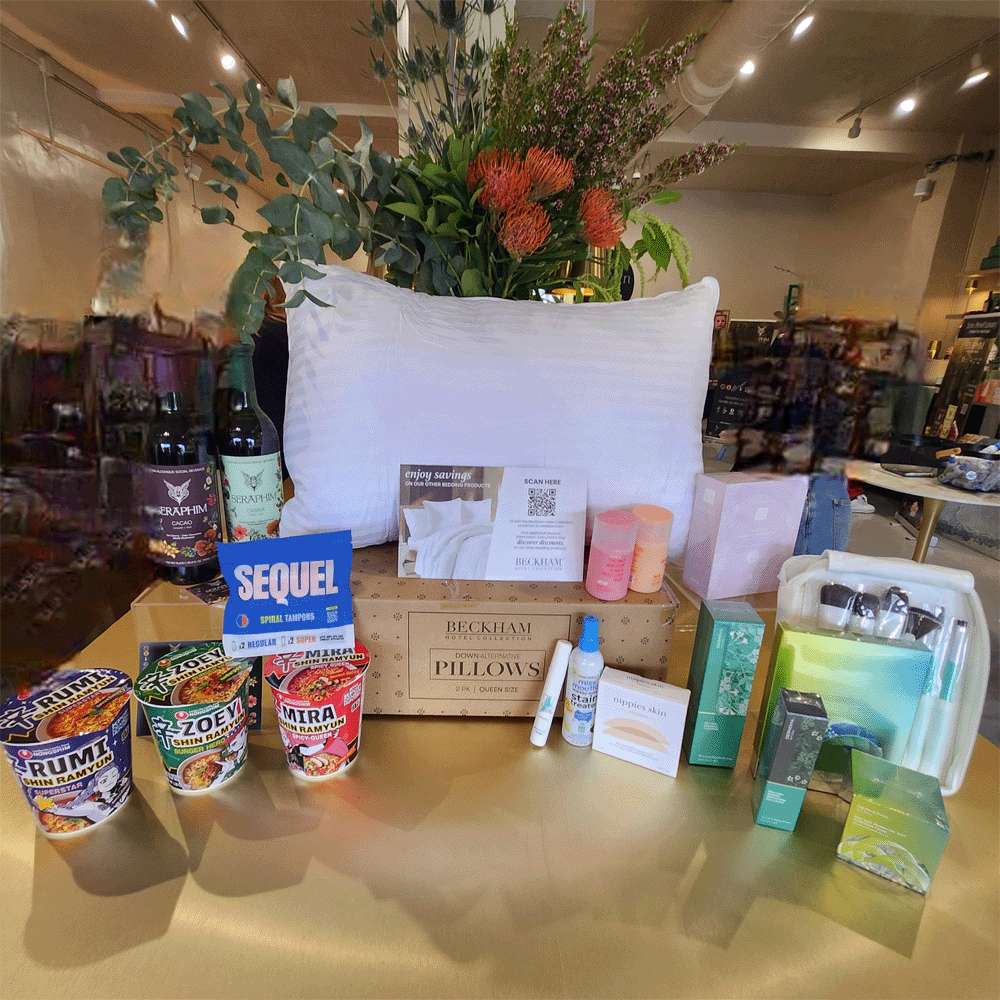 Some of the standout gifts included cozy Beckham pillows, the always-handy Miss Mouth’s Stain Treatment, Nippies Skin essentials, Zoey!, Sequel Spiral Tampons, and Dermovia skincare, just to name a few. Guests were also treated to refreshing Seraphim non-alcoholic beverages, which were the perfect addition to the experience.